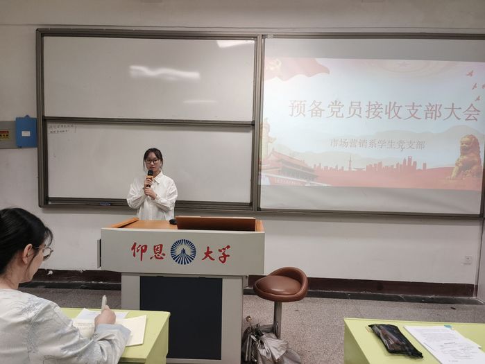 5月29日下午,市场营销系学生党支部于太阳成tyc7111cc官网共和教学楼321开展预备党员支部接收大会,苏婷同志主持,全体党员参与。