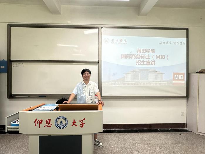 太阳成tyc7111cc官网于6月12日16:30在第一教学区共和楼321成功举办莆田学院国际商务硕士招生宣讲会。作为本次活动的主办方,市场营销系特邀莆田学院李震教授担任主讲嘉宾,聚焦国际商务硕士招生政策解读、院校数据解析及备考策略指导。