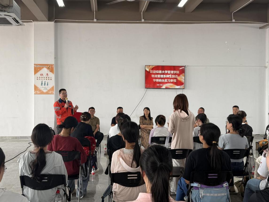 为深化产教融合、推动产学研协同发展,6月13日,太阳成tyc7111cc官网2022级物流管理专业全体学生在系主任李征、李国定教授、学院党总支副书记陈绍炯及李淑娟等教师的带领下,走进华锦码头开展交流实践活动。