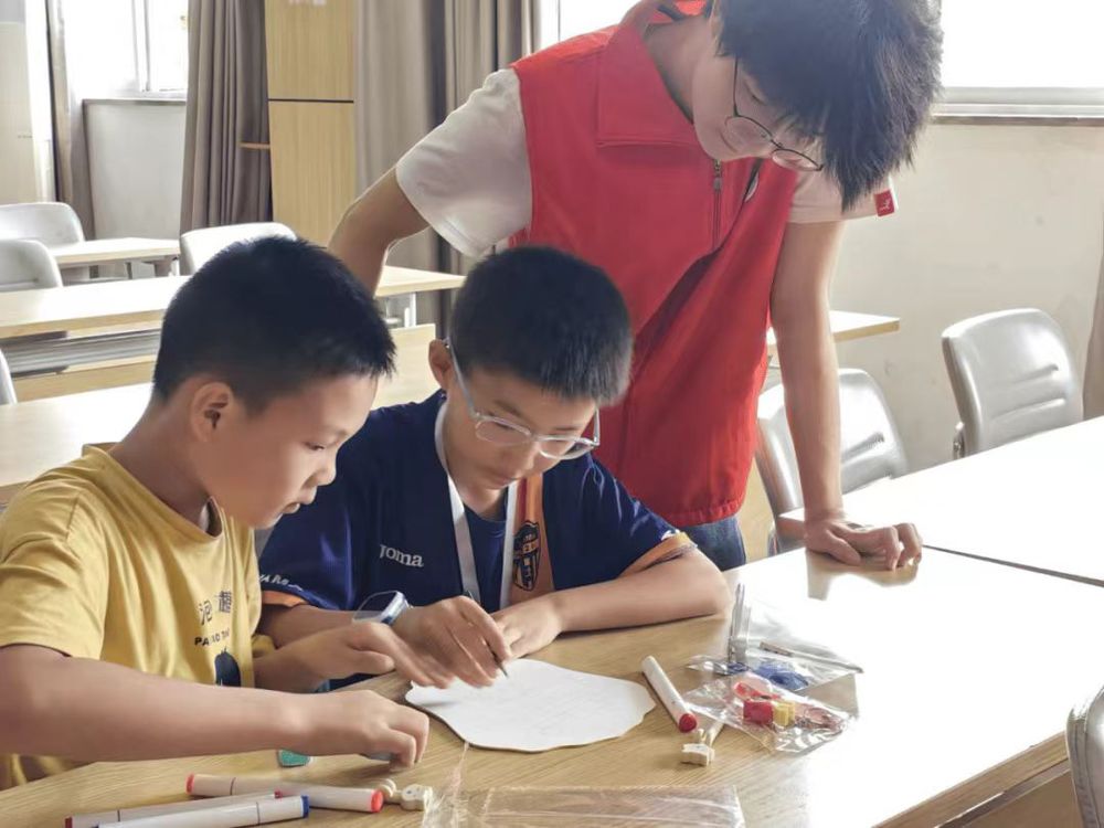 队员们在后溪村开展了丰富多彩的教育帮扶活动。他们为村里的孩子们精心设计了多元化的课程体系,涵盖英语口语、趣味科学、艺术手工等多个领域。在课堂上,队员们运用生动有趣教学方法,激发孩子们的学习兴趣和求知欲。鼓励孩子们勇敢表达自己,增强团队协作能力和沟通能力,为孩子们的暑假生活增添了丰富的色彩,也为乡村教育的发展贡献了新的思路和方法。