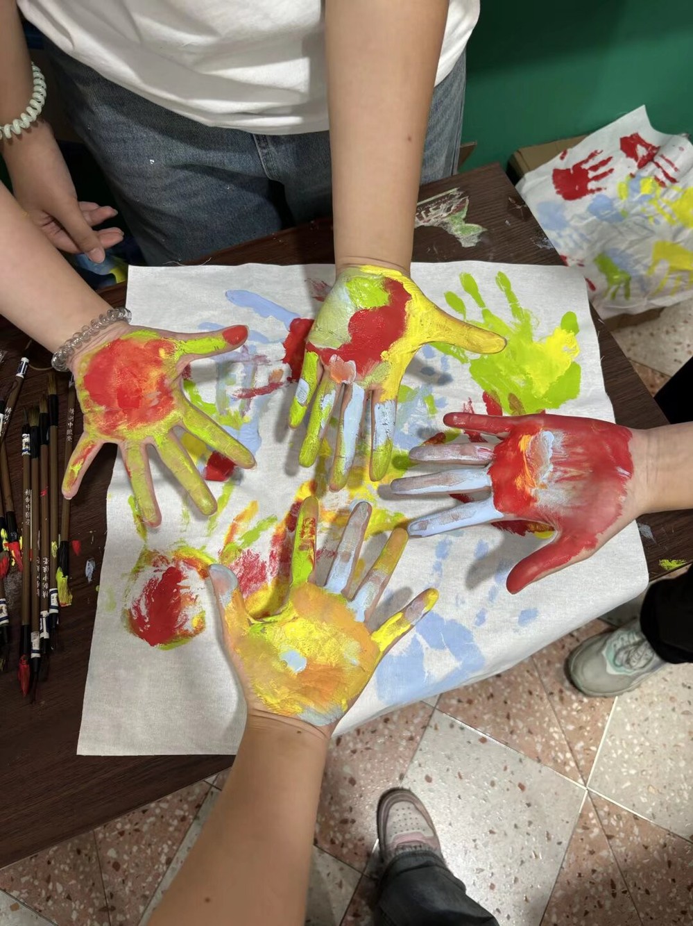 【实践】实践队员教孩子们在画布印手印