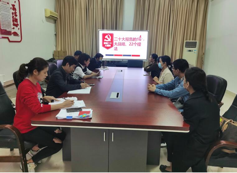 会上,学院党委副书记(主持工作)郑苏青传达学习《党的二十大报告的16大战略、22个提法》,她指出一是要提高政治站位,始终坚持正确立场,自觉抵制各种错误思潮和言论;二是要提升能力素质,在自己的专业领域发挥更大作用;三是要加强自身建设,充分发挥引领作用。