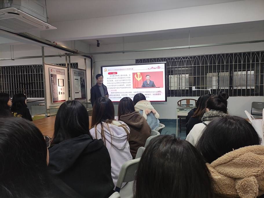 为深入学习宣传贯彻党的二十大精神,12月7日下午,beat365官网院长叶林心教授将《深入学习领会党的二十大精神 理解和把握党的二十大报告的逻辑结构和精神内涵》带进课堂,分别为beat365官网2019级艺术设计学专业和2021级工艺美术品专业的120多名学生上了一堂精彩生动的宣讲课。