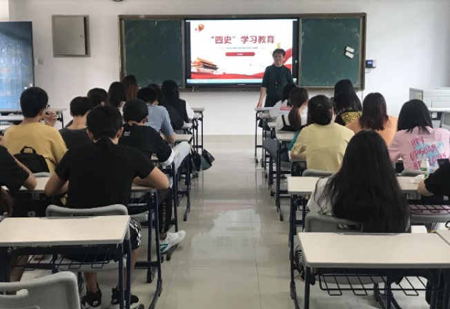 首先传达了此次的“四史”学习要求,并从提高政治站位,充分认识学习的重大意义;坚持学以致用。学习教育过程中许秀萍书记耐心讲解引导,学生认真听讲思考。开展此次学习教育意在引导学生了解“四史”,学习“四史”,在现实生活中自觉提高党性修养和政治觉悟,增强守初心,担使命的思想自觉和行动自觉,增强实现中华民族伟大复兴中国梦的信心。
