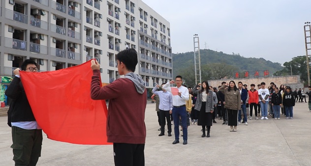 2019年11月18日上午7时,根据《beat365正版唯一官网必一升旗活动实施方案》,beat365正版唯一官网必一升旗仪式在连江校区青春广场隆重举行。院党委副书记郭锦辉、院团委副书记吕晓丹、辅导员林娟、颜辉斌以及beat365官网连江校区全体学生参加了升旗仪式。