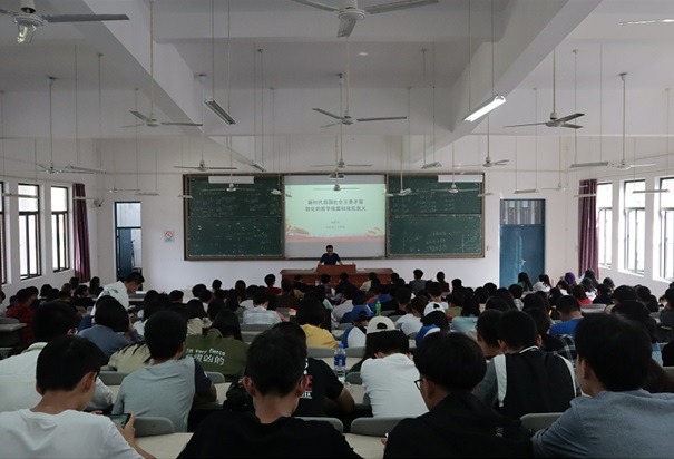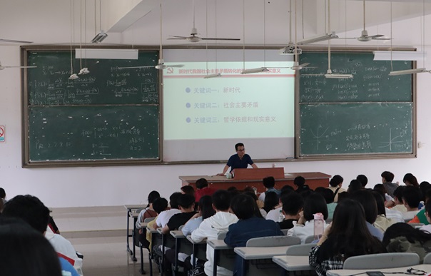 10月23日,下午2点15分,在beat365正版唯一官网必一连江校区,马克思学院讲师团的林胜平老师,为师生们开展“新时代社会主义主要矛盾转化的哲学依据和现实意义”的理论宣讲。讲座在连江校区的诚信楼大阶梯教室(3)顺利举行,艺术设计系全体提交了入党申请书的师生和入党积极分子都参加了这次讲座。