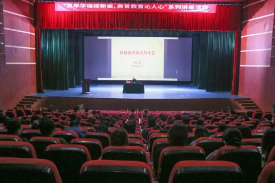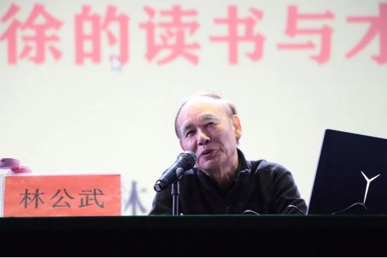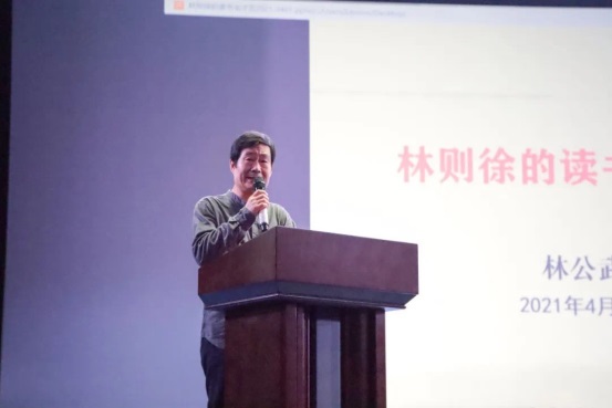 而后,林公武先生从“读书铸就了林则徐的‘人格力量’”、“读书成就了林则徐的‘文学艺术’”两个方面着手,深入为大家介绍林则徐的点滴轶事。讲述中,他简略谈及同学们耳熟能详的“广州禁烟”、“虎门销烟”等事件,从鲜为人知的史料记载入手进行讲解,向现场观众们呈现了一个清风傲骨、不畏权贵、清廉律己的林则徐形象。随后,林公武先生以“儒业世家、优良家风”、“就学书院、博览群籍”、“汉译西书、开眼阅世”、 “惜时读书、不虚度日”四个方面论述了林则徐一生与书的不解之缘,突出了林则徐对读书的追求与热爱,例如林则徐在遣戍新疆时,仍然以七辆大车载书20箧随读,吟诗道:“纵使三年生马角,也需千卷束牛腰”。