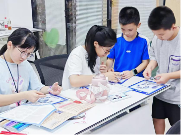 经过一系列紧张而有趣的研学任务挑战后,实践队公布了各小队的排名情况,为孩子们展示并颁发了他们精心设计的文创礼品。这些文创礼品通过创意与设计的融合,不仅将福建独特的海洋文化元素以生动、有趣的形式展现出来,还蕴含着深刻的文化热爱和教育意义。实践队成员细心地为孩子们讲解每一件礼品的设计理念,让孩子们在欣赏美的同时,感受到海洋文化的博大精深和本土文化的独特魅力。孩子们手捧礼品,脸上洋溢着满足和自豪的笑容。这一刻,不仅是对他们努力付出的肯定,更是对他们未来能够继续探索海洋知识、传承本土文化的鼓励与期许。
