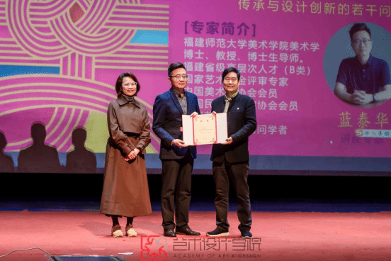 讲座上,蓝泰华教授从工艺美术、非遗定义、核心要义、价值意蕴,详细阐述了非遗文化其丰富的内涵与多样的表现形式。讲座中,蓝泰华教授分享了在福建非遗研培工作中的经验。强调了工艺与传承到工艺、设计、科技、艺术、生活的转变,并详细分享了手工艺非遗与现代设计转化的典型范式、手工艺非遗设计转化的基本方法和原则、手工艺非遗设计转化的基本流程、手工艺非遗设计文化转化的经典案例。