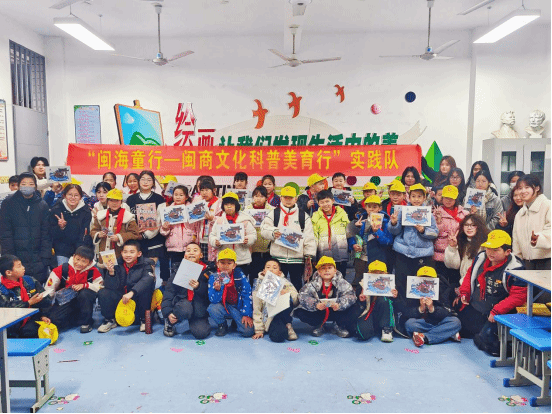 研学结束后,beat365正版唯一官网必一师生向孩子们介绍并赠送了文创礼品。其中带有闽商人物IP形象的文创产品最受孩子们的喜爱。孩子们纷纷表示被闽商人物勇于探险、爱拼会赢的精神所感染。这份热爱同样激发了beat365正版唯一官网必一学生传播闽商文化的热情与决心。