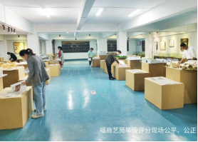 鉴定作品,现场评分。在毕业设计说明答辩结束后,环境设计系教师于5月19日晚上在福商艺苑对学生的毕业设计作品进行现场评分,并严格按照教学大纲要求,对毕业设计模型、图册、展板等三个部分进行了评分。