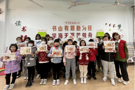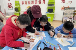 实践队成员带领同学们进行绘本描摹上色