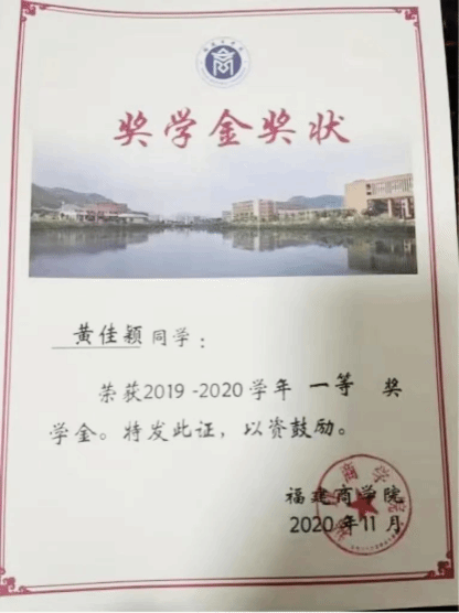 2020年9月,获校一等奖学金;