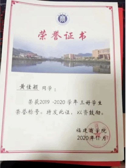 2020年9月,获校“三好学生”称号;