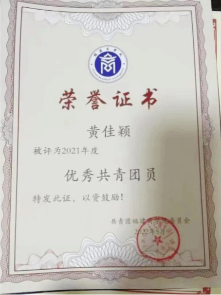 2021年5月,获校“优秀共青团干部”称号;