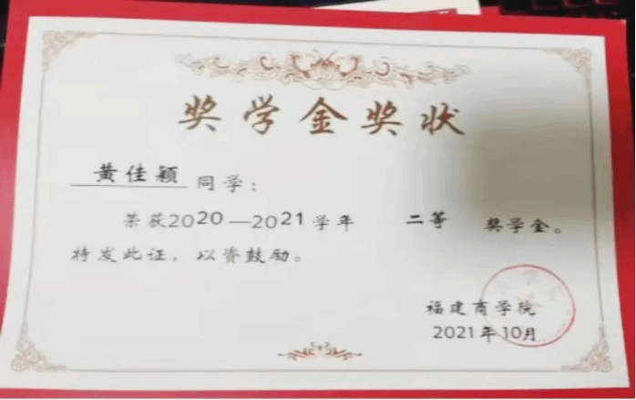 2021年9月,获校二等奖学金;