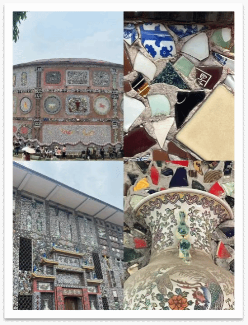 在调研过程中,我发现剪瓷雕是一种利用碎瓷片在泥塑上以上色的工艺,我联想到在之前的旅行过程中,泉州中国闽台缘博物馆门前的台柱和江西景德镇“瓷宫”是利用瓷片进行平面的装饰,这二者间在冥冥之中也是一种文化共鸣。