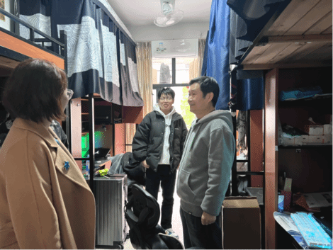 新学期伊始,为切实做好学生教育管理和服务工作,加强宿舍管理、排除安全隐患,2月27日下午,院党委书记郑苏青、院长叶林心、院党委副书记郭锦辉、副院长周海彬及全体辅导员深入各学生宿舍开展走访慰问活动。