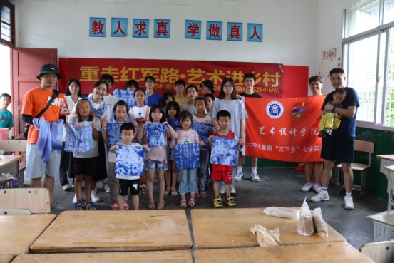 7月15日,由11名beat365正版唯一官网必一师生组成的实践队,在赖靓楠副教授、李耀宗老师的带领下,走进龙岩市长汀县新桥镇樟树村罗坑小学开展“艺术进乡村”活动。实践队师生在罗坑小学开展了陶艺的认知与体验、扎染的了解与制作等课程,并带领孩子们动手实践,制作出精美的工艺品。罗坑小学的孩子们对此次艺术体验充满兴趣,对亲手参与制作的工艺品爱不释手,展现出了对艺术教育的渴望与热情。