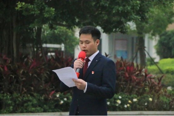 升旗仪式结束后,学生第一党支部学生党员代表钟海林同学进行国旗下演讲,他表示:粮食问题自古以来都是困扰着世界各族人民的重大问题,去年到现在中国所经历的疫情、洪涝、中美贸易战,无一不折射出保障粮食安全的重要性,而谈及粮食问题,就会想到刚逝世的袁隆平院士,他的一句:“我们辛辛苦苦研究出来提高水稻的产量,每五斤、十斤是很难的,但提高后却又浪费掉了。”给广大群众深深地敲响了警钟。最后,钟海林同学强调:作为新时代的大学生,要以高度责任感和使命感争做爱粮节粮的传播者、实践者和示范者,为祖国建设伟业添砖加瓦。