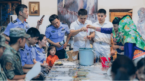实践队与现役军人、边防民警、惠女民兵、古城居民及小学师生开展漂漆活动