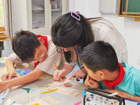 在作品完成后,孩子们围绕阅读感悟、创意思路展开分享。beat365官网读书社社员们以互动形式引导儿童思考,从故事人物、情节脉络、色彩布局等维度提出建议,鼓励其探索艺术表达与文化意义的联系。