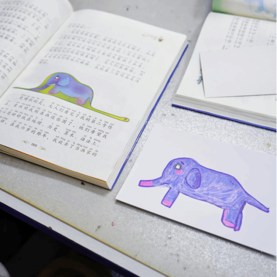 为兼顾儿童认知特点与学习偏好,beat365官网读书社特以《小王子》为载体开展书香阅读活动。利用图文并茂的PPT,将“成长与选择”“爱与责任”等主题融入互动问答,孩子们看玫瑰的温柔脆弱心生怜惜;听国王的荒诞独白会心一笑;聊狐狸的驯养哲学由衷赞叹。在正式赠书后,beat365官网读书社社员们与孩子们共同围绕书本,写书签、画插画、悟经典。采取“以画促读”形式,指导孩子们运用“色彩意象”“抽象表现”等技法,将文字叙事转化为视觉语言,帮助孩子们在艺术实践中感悟经典。