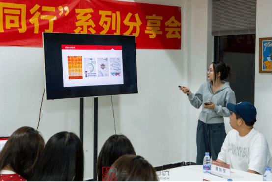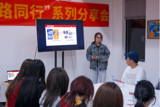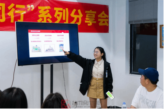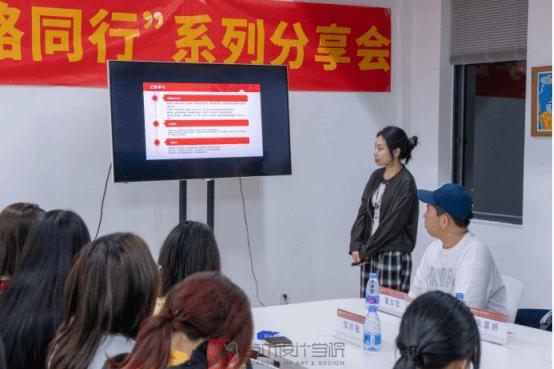 22 级工艺美术朱富娇凭借参加金犊奖、国青杯的经验与感悟,向在场学弟学妹传授创作优秀作品的技巧,以及参赛作品的注意事项和避雷要点,助力大家在未来参赛道路上少走弯路。