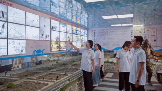 实践队通过走访村落,考察特色墙绘,参观畲族文化馆,系统学习了畲族历史、农耕、海洋文化及民俗风情,并通过海盐微缩模型深入了解了纳潮、制卤等非遗制盐工艺,深刻领略了海盐文化的独特魅力与非遗技艺的智慧。实践队与村委深入交流校地合作及调研计划,为后续挖掘畲族文化奠定了坚实基础。