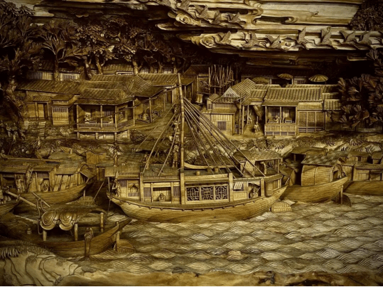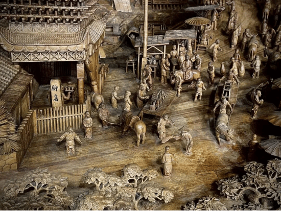 在春辉木雕纪念馆,实践队沉浸式体验了莆田木雕与家具艺术的完美交融。馆内除海量木雕精品外,还陈列着雕花床榻、浮雕八仙桌等传统家具,充分展现了木雕赋予家具的蓬勃艺术生命力。尤为震撼的是巨型木雕《清明上河图》,其长达12.286米的双面雕刻中巧妙融入了家具神韵,历时四年创作并创下吉尼斯世界纪录,是匠艺的巅峰之作。队员们还跟随师傅学习木雕基础工序,在老家具的细微之处感受传统技艺的温度。