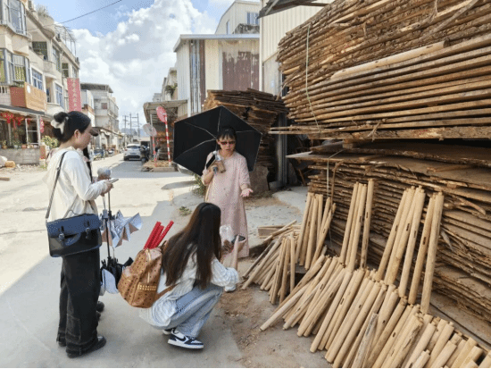实践队走进兴化府历史文化街区,穿梭于古建筑之间。他们仔细观察建筑上的木雕装饰,发现其纹饰风格与旧时太师椅雕花相似,窗棂的镂空技法也与传统衣柜门板同出一源。队员们细致比较建筑与家具的工艺细节,触摸两者共享的木雕文化脉络,并与街区管理方交流探讨,为挖掘建筑与家具同源共生的文化内涵积累素材。