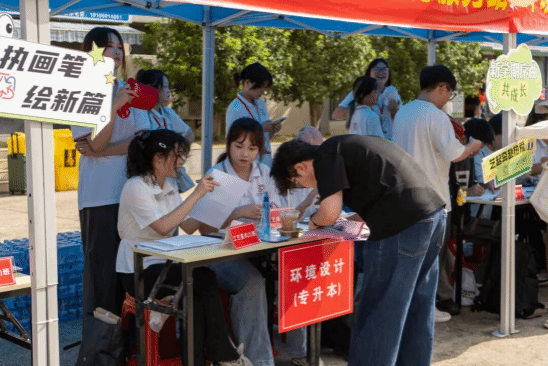 学院还将专业特色巧妙融入迎新环节。学生志愿者精心设计了融合艺术元素的迎新展板、签名墙和打卡点,既美观又富有互动性,吸引了众多新生驻足留念。并专门设置"家庭经济困难新生咨询台",为新生搭建"绿色通道"服务平台,答疑解惑,帮助他们深入了解助学措施,切实解决入学顾虑。