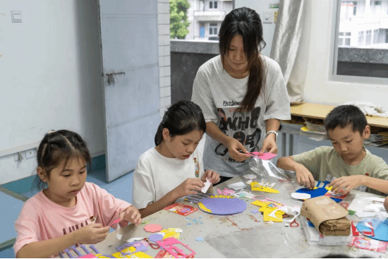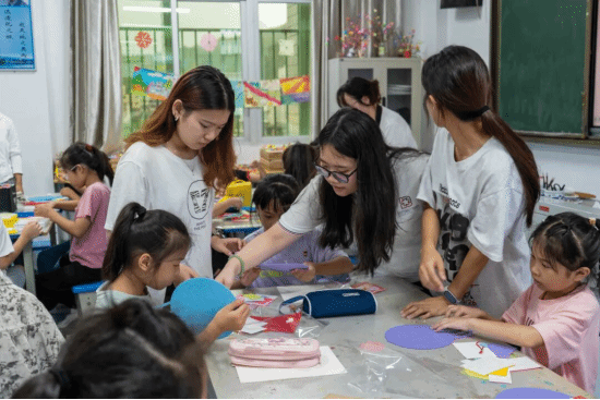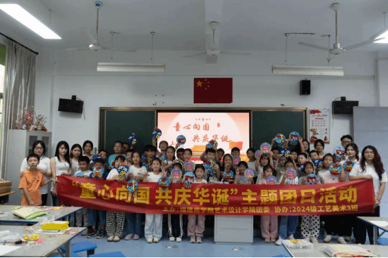 2024级工艺美术3班团支部则走进潘渡中心小学,为小学生们讲解国庆由来和抗战历史,开展爱国知识竞答,并指导孩子们制作与国庆、抗战胜利相关主题的手工作品。