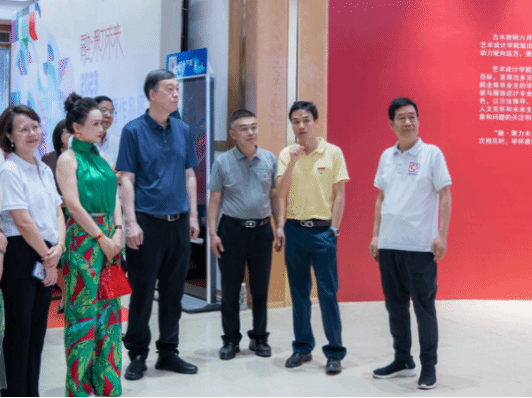 王永礼表示希望学校在教学的过程中能够将设计实践落地,并能与乡村振兴工作结合,对接生产企业进行成果转化,完成作品往商品的转换,突出体现学校“商”的特色,为服务地区和行业作出更大的贡献。叶双瑜在参观后表示今年展览的作品主要体现出以下12字的特点:理念新、题材广、技法精、水平高,并希望学校能够加强与政府主管部门的联动合作,建议学校能够通过举办或承办一些大型的国际性活动和比赛,提升学校的社会知名度。