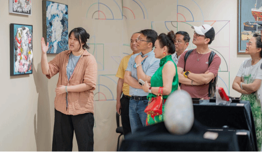 学生为观展嘉宾介绍自己的作品