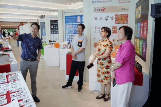 福建省妇联副主席包方(右一)、福建省委党校吴贵明教授(右二)参观展览