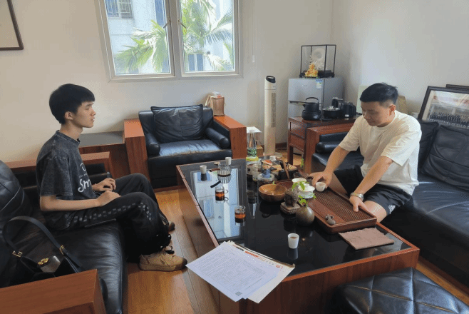 全程对接,坚持重点帮扶不断线。针对重点对象,学院开启就业“直通车”服务,实现“学生-辅导员-企业”三环精准对接,切实打通学生从校园走向社会就业的“最后一公里”。7月11日,辅导员带领困难学生来到福建省久号餐饮管理有限公司,企业进行简短面试后,直接聘用学生为品牌设计师,当场签订三方协议。