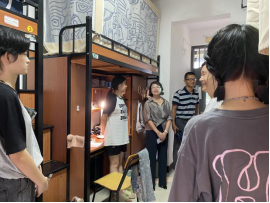 在走访过程中,郑书记对新生的到来表示欢迎,亲切地询问大家入校以来的日常生活及适应程度,鼓励同学们之间快速熟悉交流起来,融入大集体,互帮互助,建立和谐融洽的人际关系。同时叮嘱新生,初入校园,要提高安全防范意识,确保人身财产安全,谨防诈骗,遇到困难要第一时间与辅导员联系。此外,老师们也仔细巡查了各间宿舍的设施设备状况,叮嘱大家注意宿舍用电安全,避免发生用电起火等情况。师生敞开心扉,以沟通和倾听的姿态,共同发现问题、解决问题。