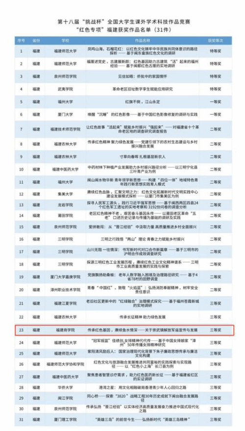 学院高度重视“挑战杯”竞赛,紧紧围绕立德树人根本任务,以“挑战杯”系列竞赛为龙头,深入实施大学生创新能力培养计划,以赛促学、以赛促创,积极培养学生创新意识,在奋力谱写中国式现代化福建篇章中激扬青春梦想、贡献青春力量。