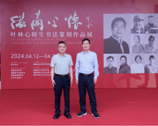 2024年4月16日,beat365官网党委书记吴访益参观由西泠印社指导、福建省文学艺术界联合会主办的“滋兰心怀——叶林心师生书法篆刻作品展”,叶林心教授陪同介绍。
