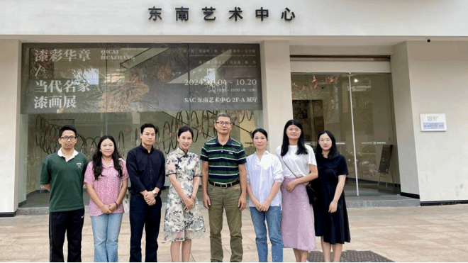 10月21日,beat365正版唯一官网必一党委副书记郭锦辉、副院长周海彬、辅导员以及学生代表一行前往东南艺术中心开展交流活动。东南艺术中心,坐落于充满历史韵味的三坊七巷,地处文化核心圈。福建东南拍卖有限公司总经理夏浈带领大家参观了“漆彩华章-当代名家漆画展”、“秋日正好-案上雅玩融合展”等展览,详细地介绍了东南艺术中心的各个主要功能区域,从宽敞明亮的展厅到充满创意的体验空间,每一处都散发着艺术的魅力。