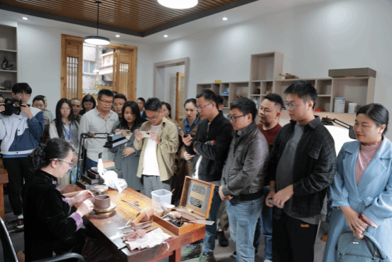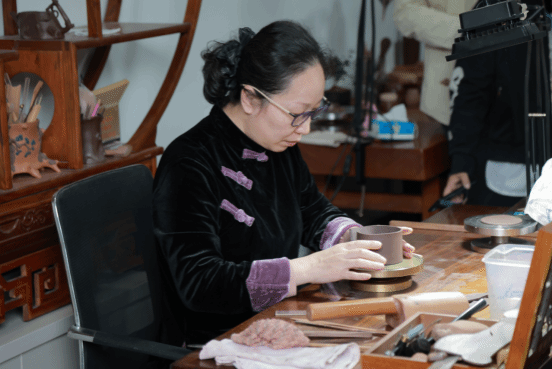 在魏定伟技能大师工作室,学员们观摩了紫砂制作的全过程,打泥条、划泥片、围身筒、打身筒、调脂泥……紫砂制作的每一个步骤都充满了匠心意气,让学员们不禁沉浸其中,深切感受到了非遗文化的独特吸引力。