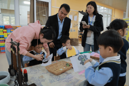 在柘荣县第一幼儿园,学员们调研了非遗文化进校园的情况。幼教老师赋用富有童趣的方式向孩子们教授柘荣剪纸、传统绘画、甜品制作等技艺,培养孩子们的实践动手能力。在丰富多彩的非遗活动浸润中,孩子们对柘荣优秀传统文化有了初步的认识并产生了浓厚的兴趣,非遗文化在更多孩子心中生根发芽,为培育下一代非遗传承人打下良好基础。