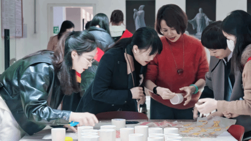 “瓷语花韵”瓷花制作区,女教职工们揉捏温润瓷土,或雕琢花瓣纹理,或精修动物形态,将永不凋零的浪漫定格于掌心。瓷花与大家的热情相映成趣,成为一道流动的风景线。有参与者笑称:“瓷花虽无声,却诉说着女性对美好生活的追求。”