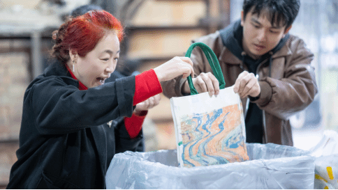 “漆彩流光”漂漆体验区人气爆棚,beat365官网工艺美术专业教师现场演绎滴染、转印等飘漆技法。女教师们手持团扇或帆布袋,蘸取天然大漆,在流动的色彩中勾勒出独一无二的纹样,宛如将水墨丹青定格于方寸之间。参与者感叹:“漆艺的流动感与色彩交融,像是一场指尖的即兴舞蹈!”