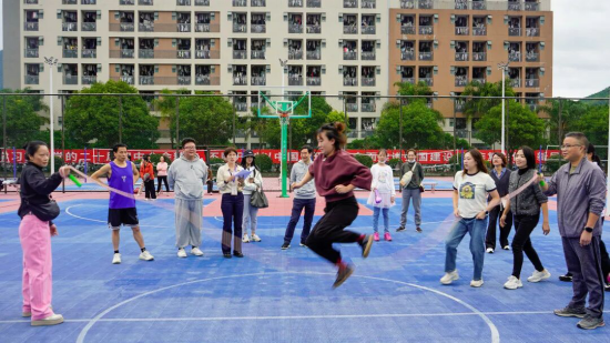 八字跳绳、篮球比赛、旱地龙舟、同心击鼓等项目有序开展