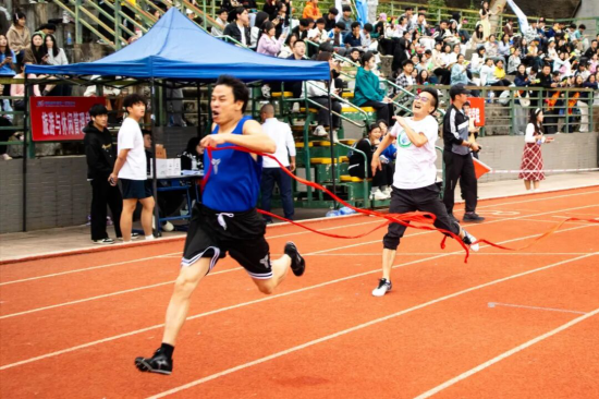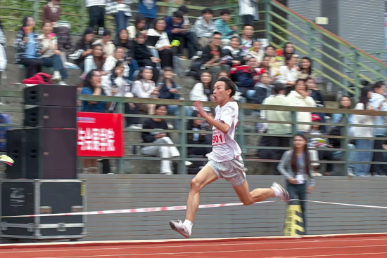 周海彬老师不仅夺得冠军更打破了四年前自己创下的男子100米和200米校运会记录展现了不凡实力