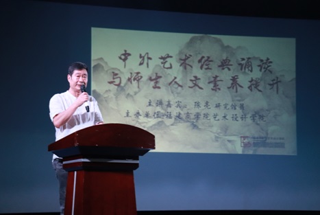 2019年9月27日晚,beat365正版唯一官网必一在明德楼学生活动中心举办“中外艺术经典诵读与师生人文素养提升”专题讲座。本次讲座由南京艺术学院图书馆馆长、研究馆员陈亮老师主讲,beat365正版唯一官网必一院长叶林心教授主持,学院党委副书记郭锦辉、辅导员吕晓丹及全院学生参加了此次讲座。