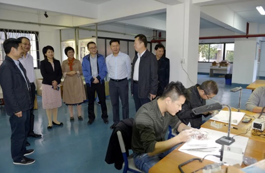刘剑津书记、林守钦副厅长等领导先后观看了陶艺、剪纸、寿山石雕等项目的创作培训的现场教学,了解窑炉、牙机等器械的使用。看到学员们热烈交流、探讨,并积极向导师请教创作出现的问题,刘剑津书记、林守钦副厅长露出赞许的目光。在参观过程中,他们详细询问了技艺的传授情况与作品的创作方向等,对教学工作的稳步开展表示充分肯定。