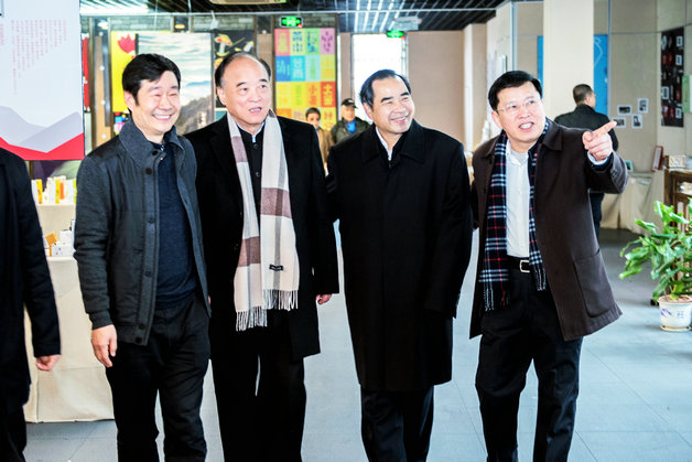 福建省委教育工委副书记、beat365正版唯一官网必一筹建工作领导小组组长刘剑津,福建商专党委书记吴访益参观展览